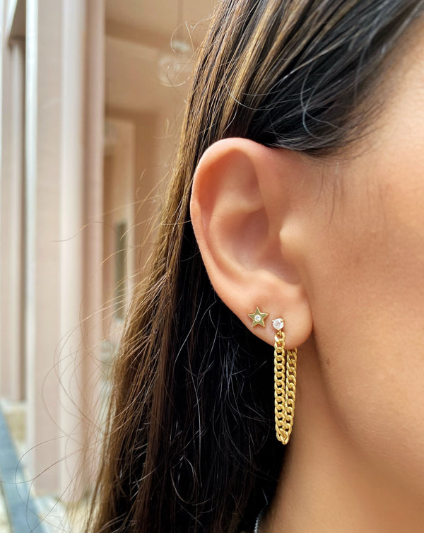 3 Prong Diamond Chain Earring
