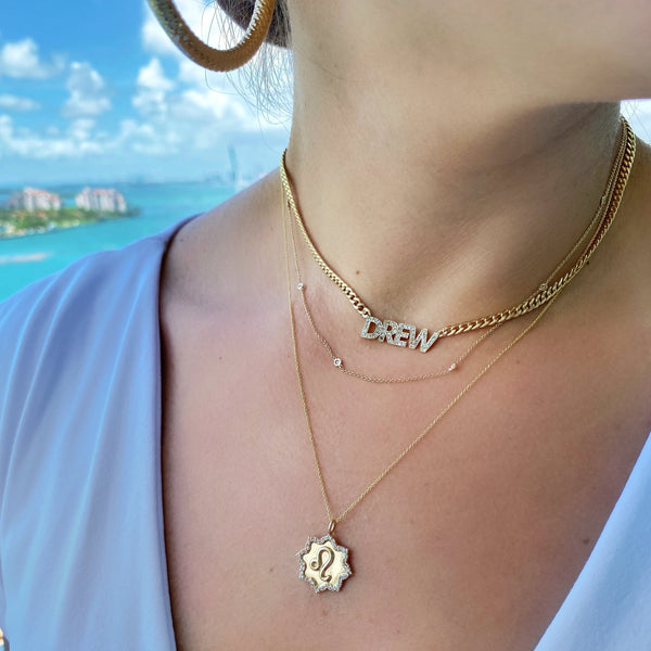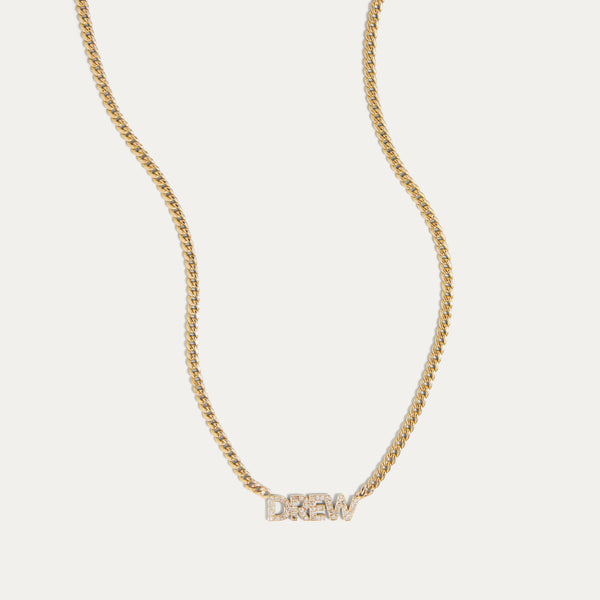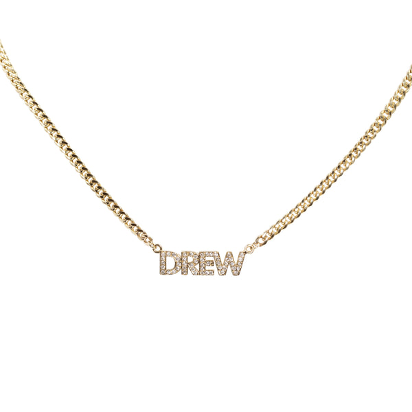 Pave Diamond Name Necklace on a Cuban Link Chain